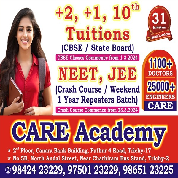 Class 12th tuition in Trichy Care Academy whether you're looking for assistance in a specific subject or comprehensive tuition covering multiple subjects for class 12th there are various options available including private tutors coaching centers online platforms and more