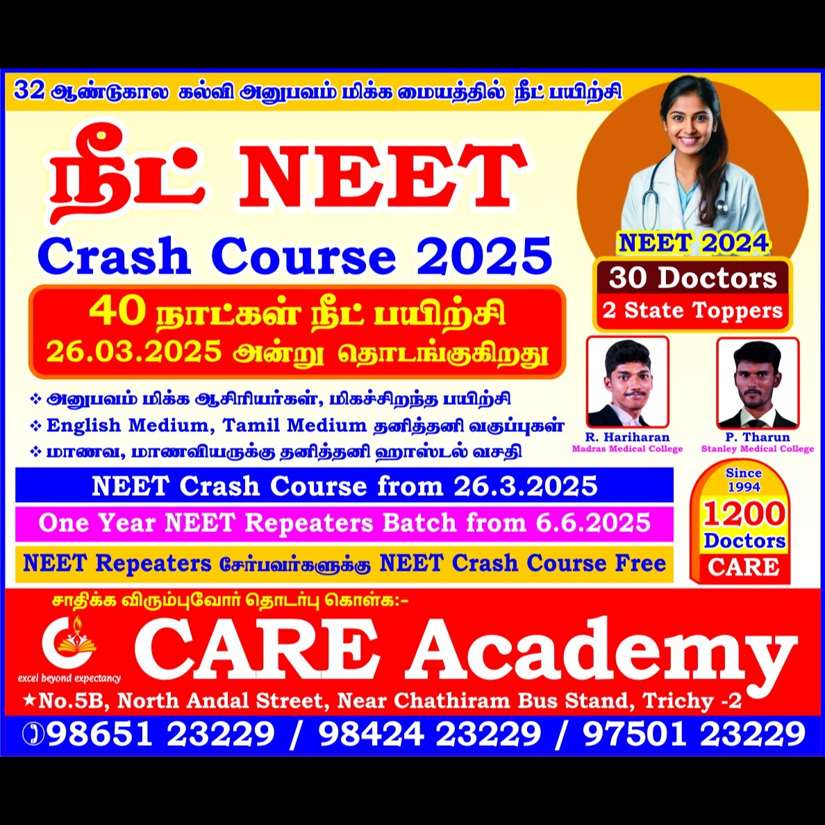 Care Academy Our program is tailored to provide students with the necessary knowledge, skills, and confidence to excel in the National Eligibility cum Entrance Test. We offer detailed subject explanations, extensive practice questions, and regular mock exams to simulate the actual NEET environment. Our dedicated faculty and supportive learning environment ensure that every student receives the guidance they need to realize their dream of becoming a doctor.