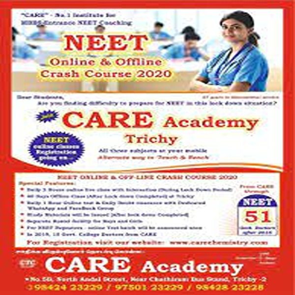 No.1 Neet coaching centre in trichy Care Academy We provide a rigorous curriculum, expert faculty, and state-of-the-art facilities. Our focus is on conceptual clarity, regular assessments, and personalized feedback to ensure you're well-prepared for the exam. Join us and take the first step towards your medical career.